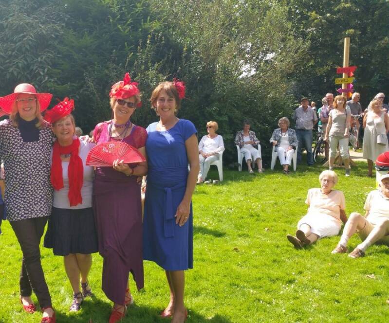 We hebben het reuze naar ons zin. De band speelt sixtie en seventy muziek, dat is net wat voor ons.
