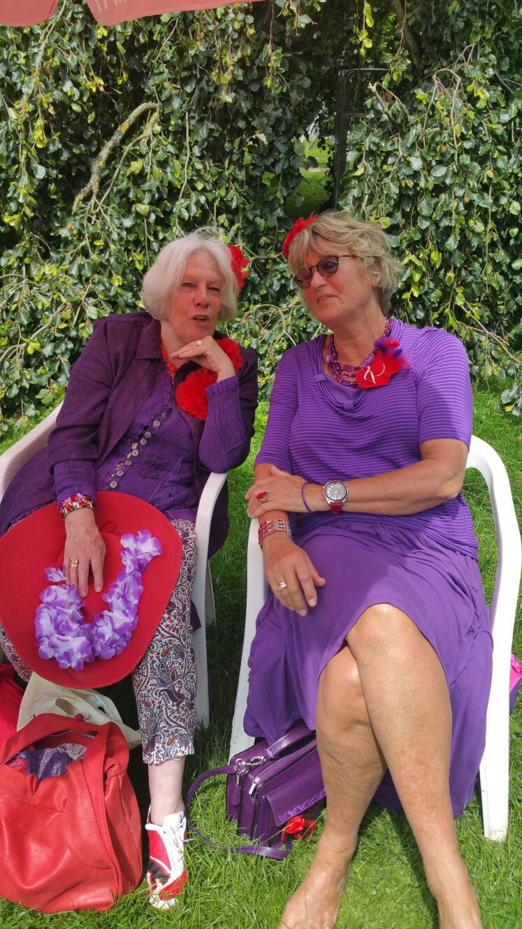 De Hinnikwagen is 200 meter verder. Maar daar staat er alleen een busje en is er geen wagen of paard te bekennen. Telefonisch heeft Freule Dorothea contact, maar dan blijkt de verhuurder met vakantie naar Zweden. Onze Queen probeert ook nog wat te regelen, maar alles tevergeefs. De dame van de koffie tipt ons naar Breukelen te gaan. Er zijn bij het gemeentehuis muziekoptredens op het grasveld. En daar gaan we op af.